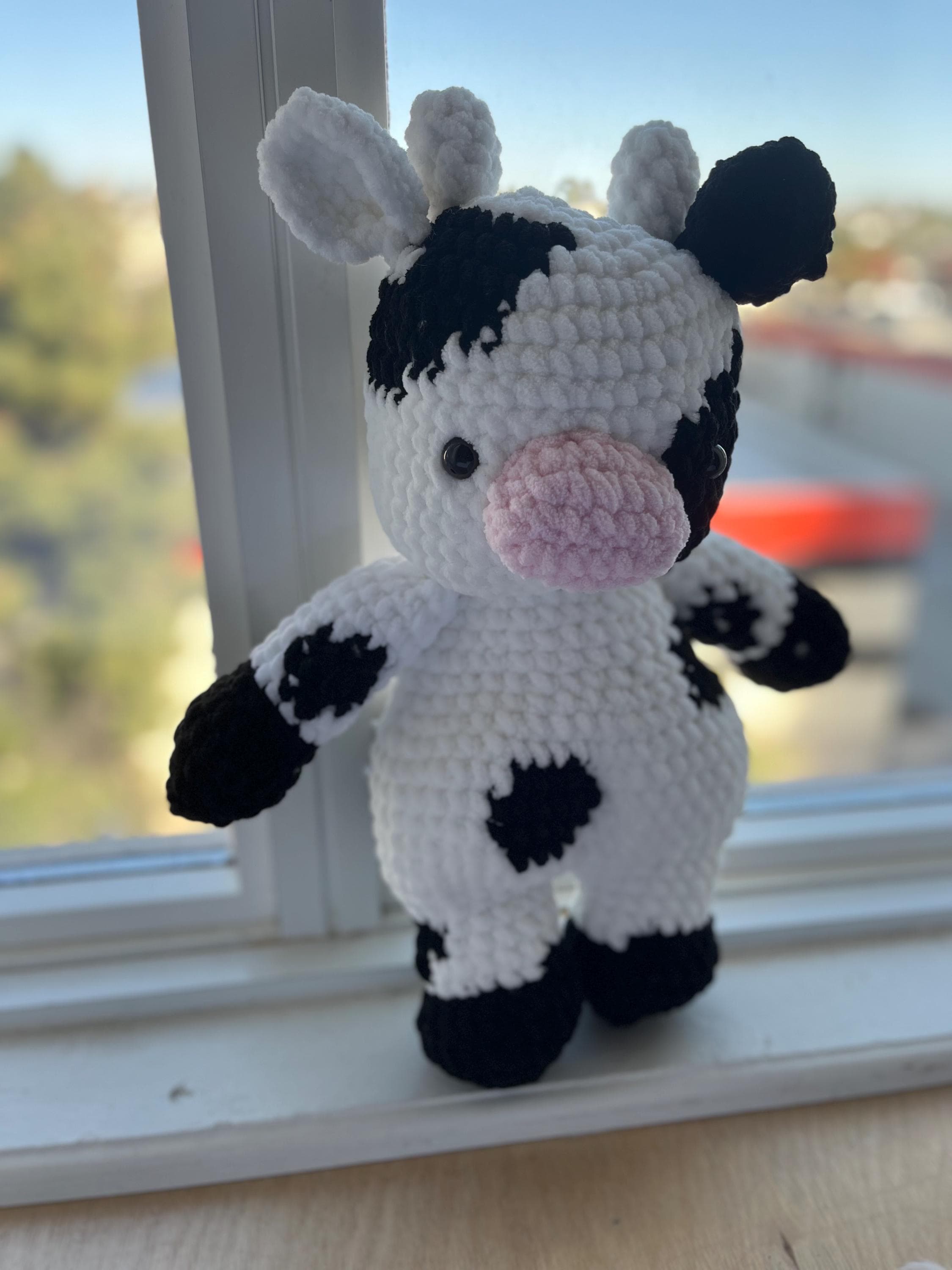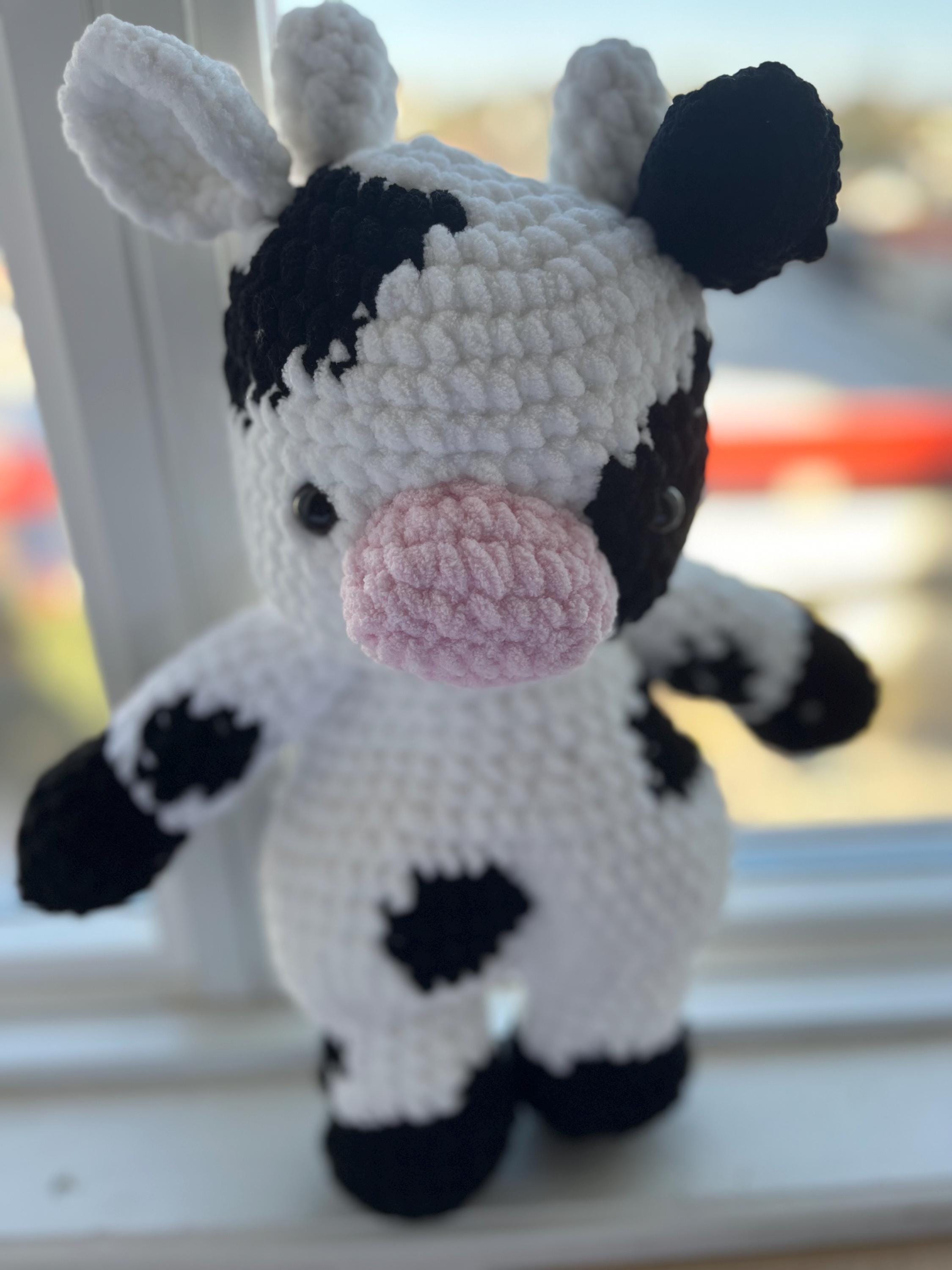 This tiny crochet cow is as cute as can be! Handmade with soft yarn and filled with love, it’s the perfect gift for a new baby or toddler. Whether for playtime, cuddling or decoration, it’s a charming piece that adds warmth to any space.